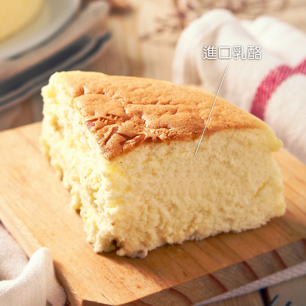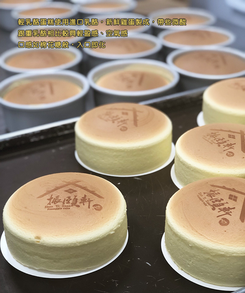 輕乳酪蛋糕使用進口乳酪、新鮮雞蛋製成,帶些微酸
