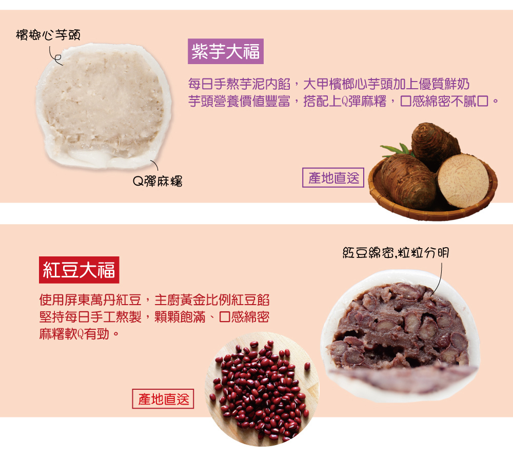 ◎內餡: 紅豆大福: 紅豆、奶油、砂糖、水
