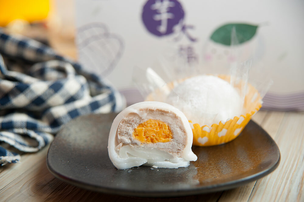 金沙芋大福: 大甲芋頭、奶油、砂糖、葡萄糖、鴨蛋黃