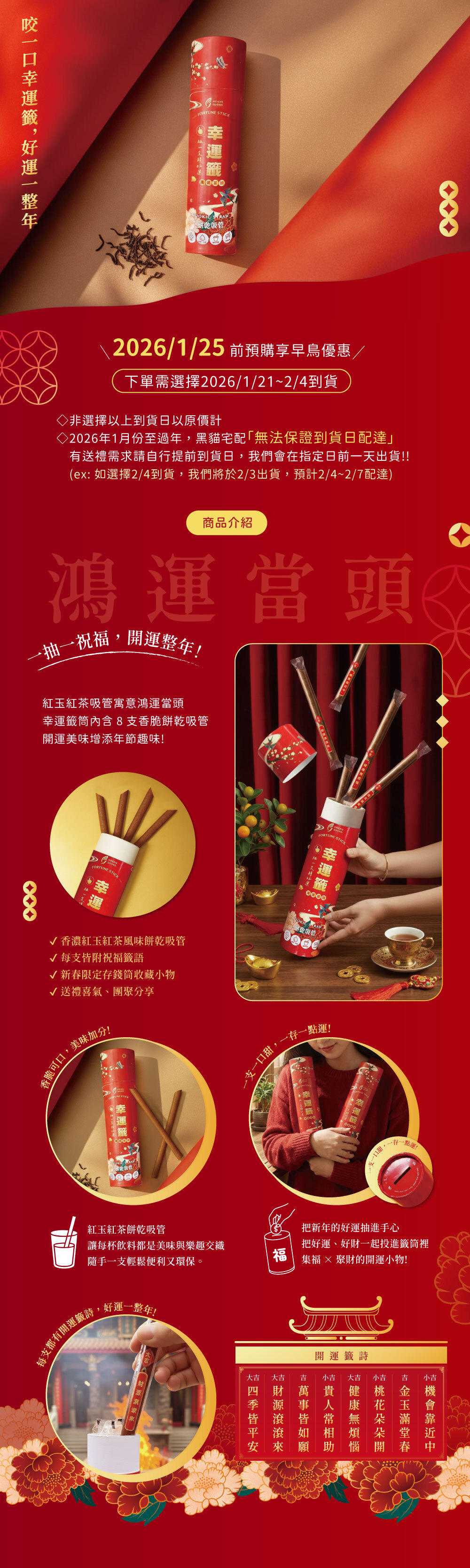 鴻運當頭幸運籤筒內含 8 支紅玉紅茶餅乾吸管