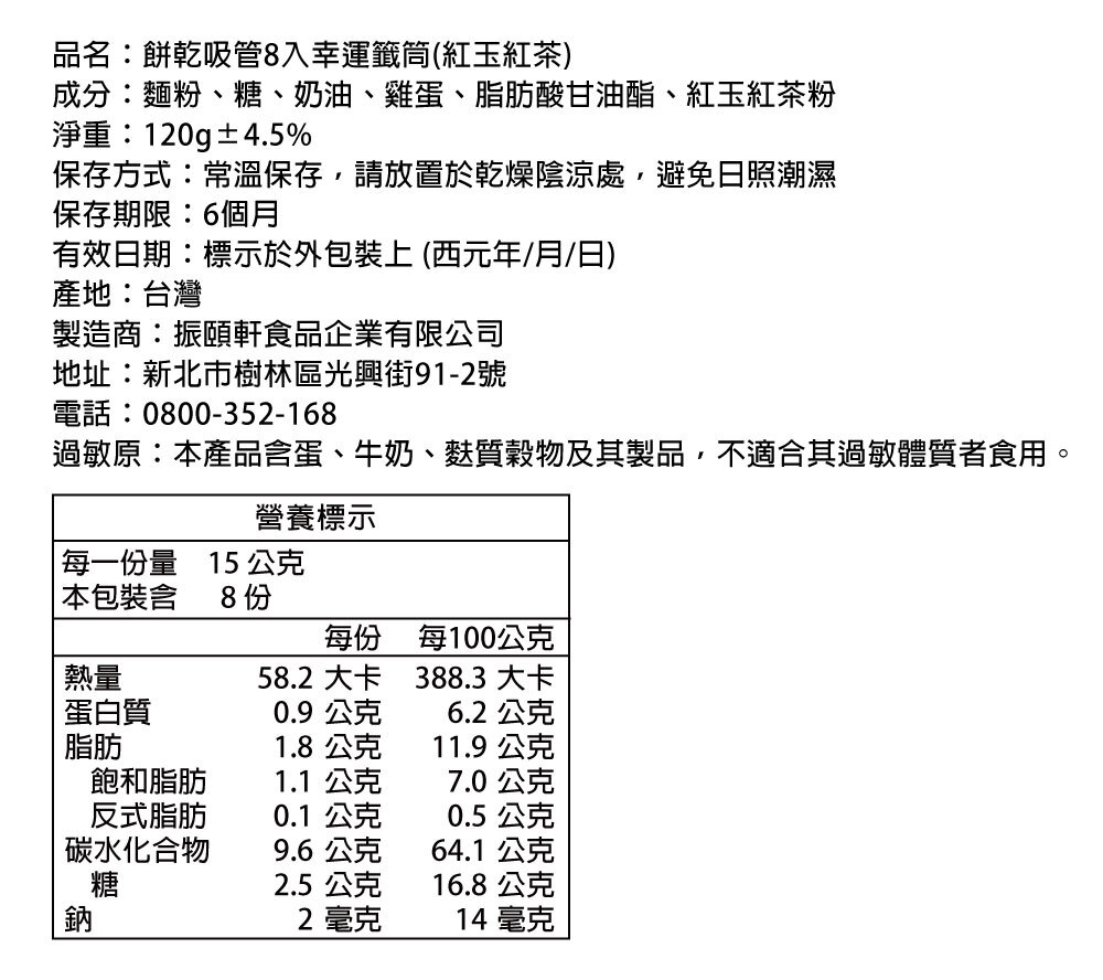 8 支紅玉紅茶餅乾吸管,皆附幸運籤詩