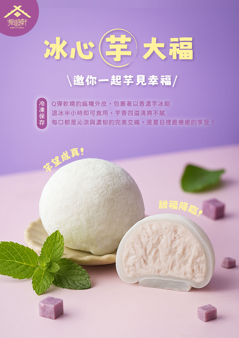 Q彈軟糯的麻糬外皮,包裹著香濃芋冰餡