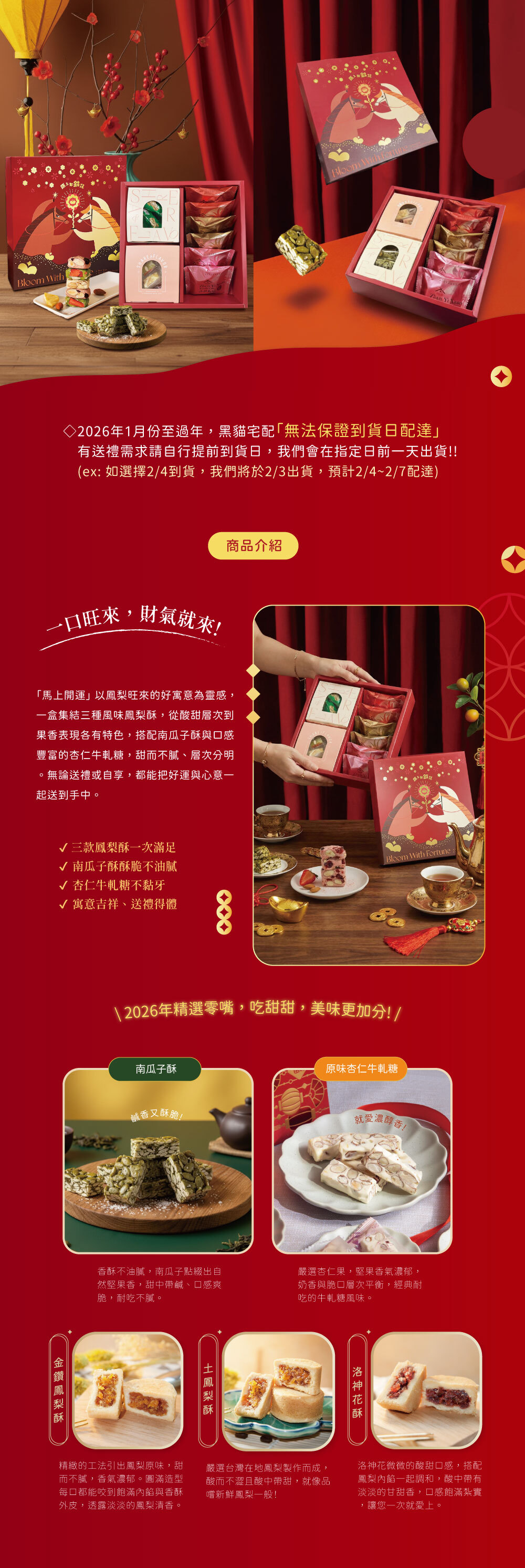🚨 因逢春節檔期 1/26~2/22 黑貓無法保證到貨日配達,有送禮需求,請務必提前到貨日。