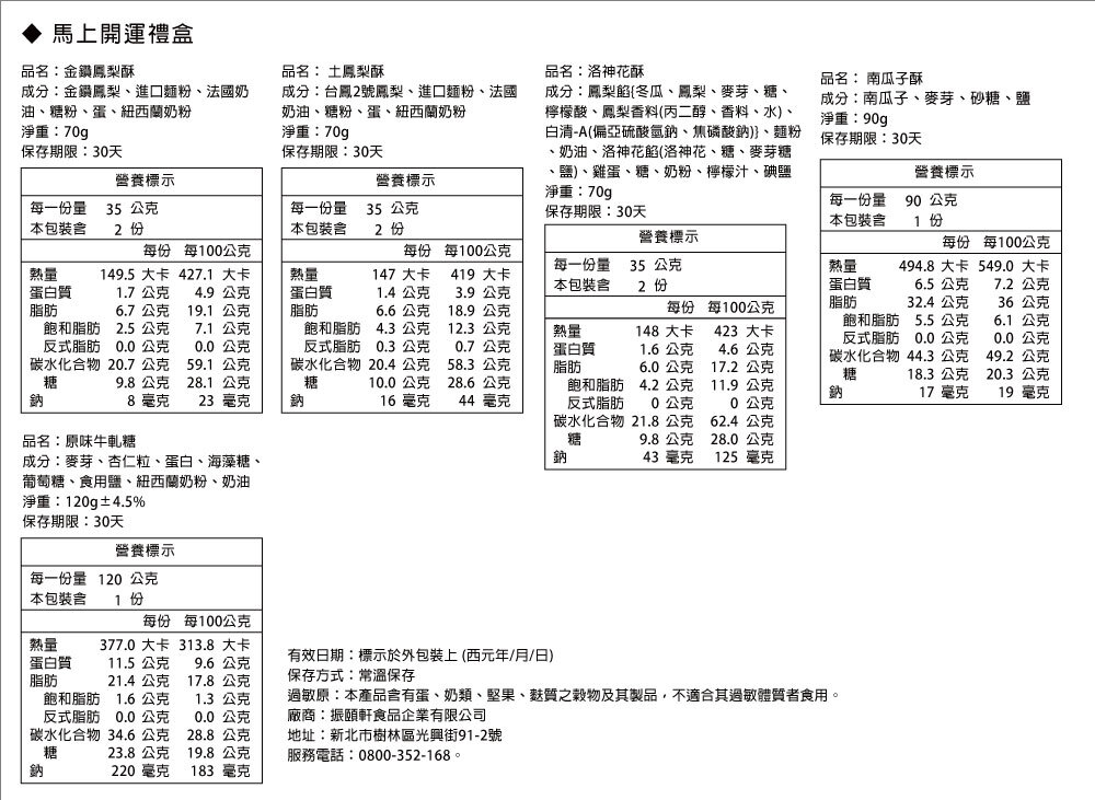 內容包含南瓜子酥、杏仁牛軋糖與金鑽鳳梨酥、土鳳梨酥、洛神花酥
