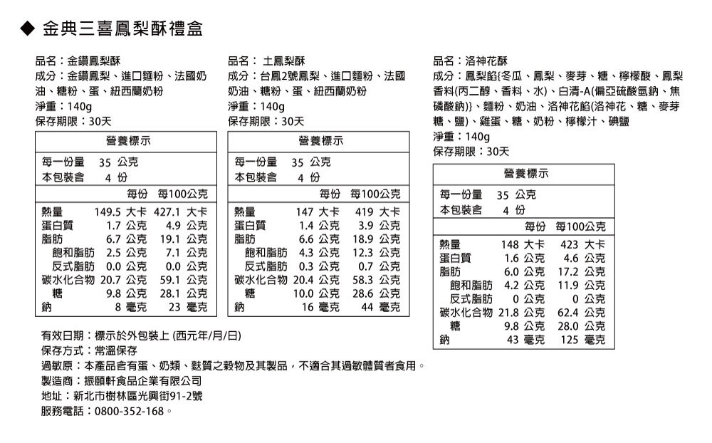 金典三喜鳳梨酥禮盒一次收錄金鑽鳳梨酥、土鳳梨酥與洛神花酥