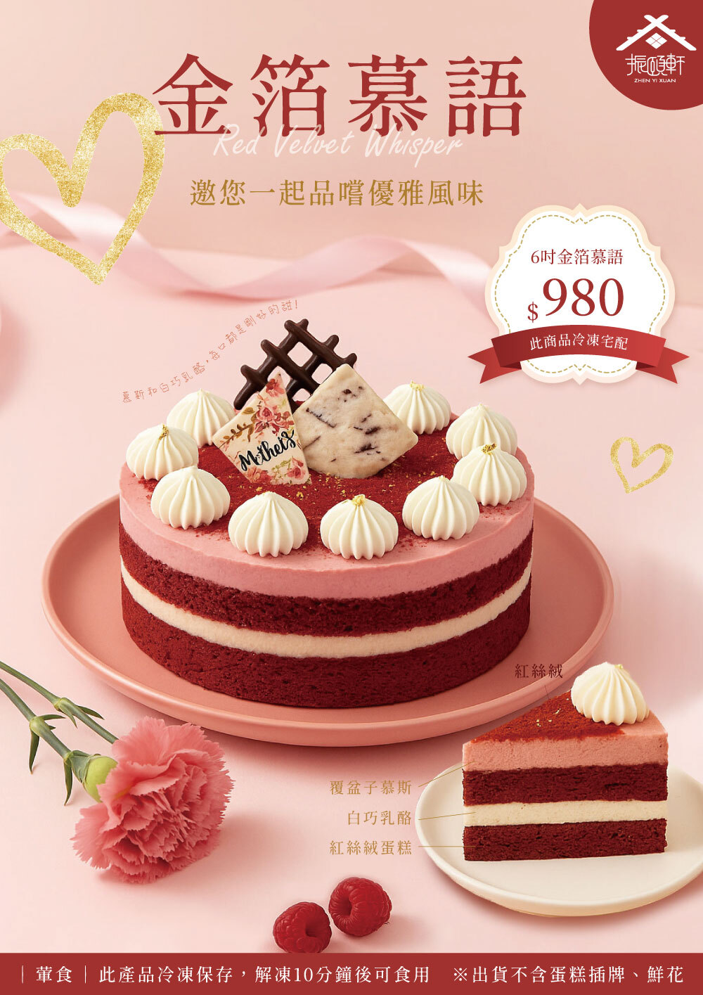 撒上紅絲絨粉與金粉,再以金箔點綴出如詩般的細節