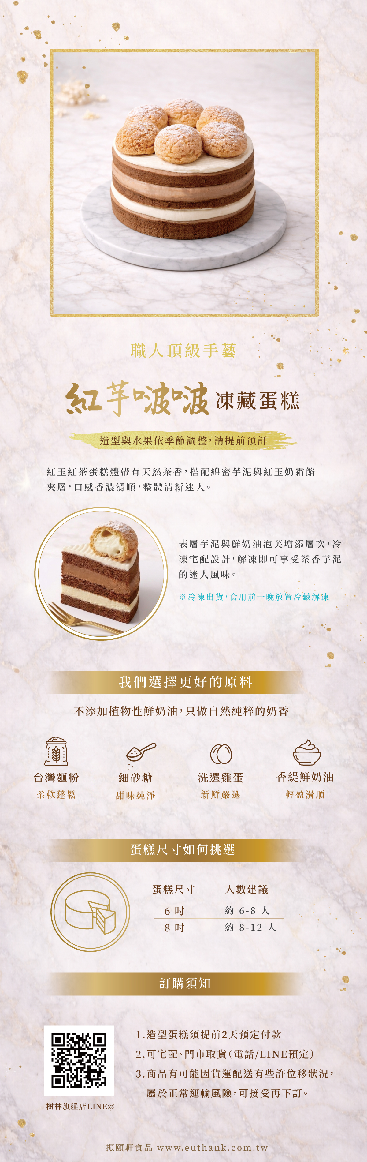 冷凍宅配設計讓蛋糕在最佳狀態下保存,解凍後依然保有細緻口感。