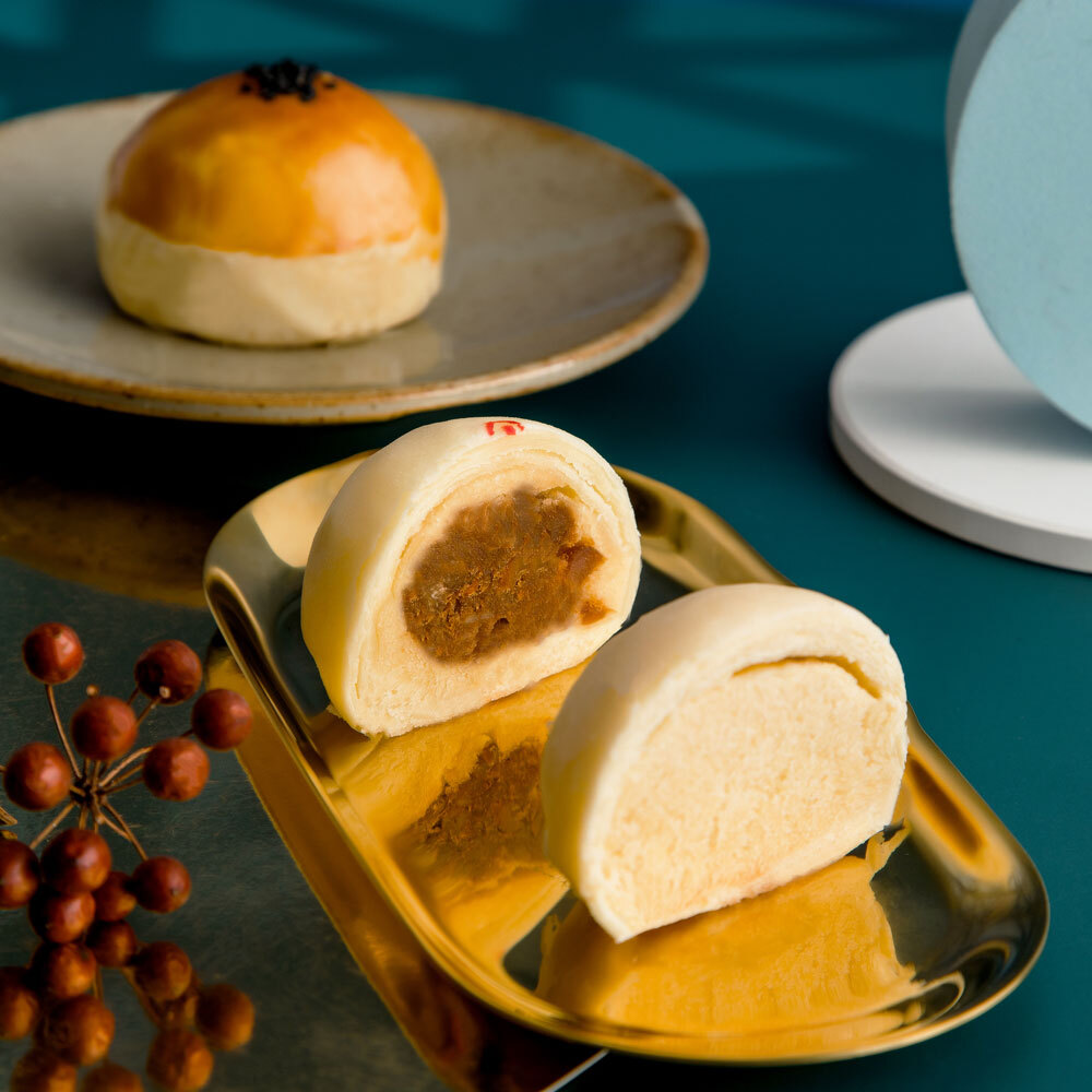 內餡採用手工拌炒的台灣豬滷肉餡,鹹香入味,與綿密鬆軟的綠豆餡完美融合。